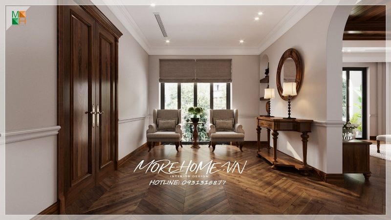 Bàn trang trí phòng ngủ được thiết kế theo phong cách tân cổ điển bằng gỗ óc chó cho không gian phòng ngủ thêm sang trọng