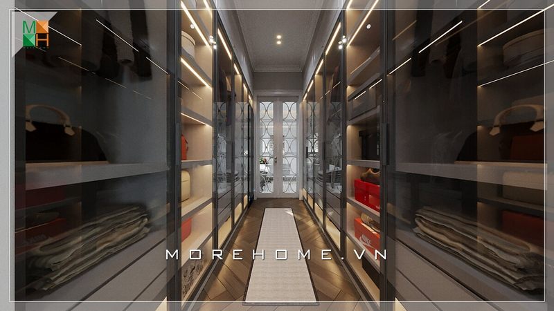Mẫu thiết kế nội thất cao cấp, bao gồm tủ quần áo rộng và dài được chia ngăn tiện lợi, được dành riêng cho các biệt thự.
